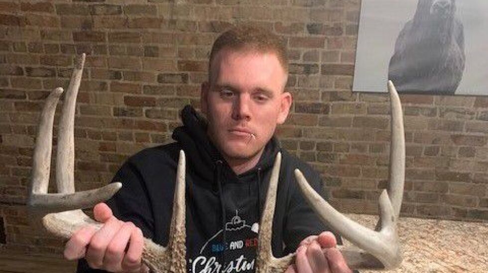 Adam Thorson, parks and rec director for Peru, found this pair of matching antlers to a thick 8-point last week in Grundy County.