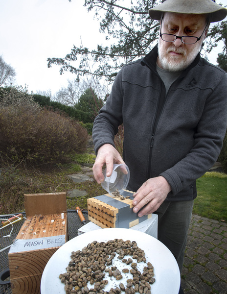 "Mason bees are the most prolific pollinators," says Robert Girvin, a Tacoma doctor who's been keeping mason bees for four years. "They're child-friendly, don't sting and are easy to manage. It's something easy you can do to improve the local environment."