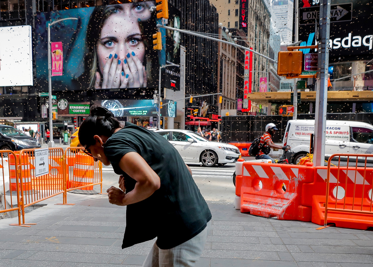 One of the most inexplicable animal stories of the year unfolded on a hot August afternoon, when a menacing horde of honeybees descended on a hot dog vendor's umbrella, bringing Times Square to a standstill and drawing swarms of gawking tourists.