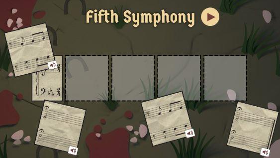 There are several sheets of paper making up a sample of music from the Fifth Symphony, the Für Elise, Midnight Sonata and the Ode to Joy (or Ninth Symphony) that you need to put in order.
