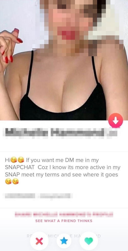 The spokesperson didn’t respond to my initial question asking if Tinder was doing anything to balance local and Passport users within the feed. Ditto for why accounts that violate Tinder’s policies, which include a ban on “promotion or solicitation,” continue to be so rampant. The Snapchat accounts attached to these profiles often promote paid “premium” subscriptions and/or prostitution and are a clear violation to both of those offenses. And if someone is utilizing Tinder merely to gain Instagram followers, is that not promotion?