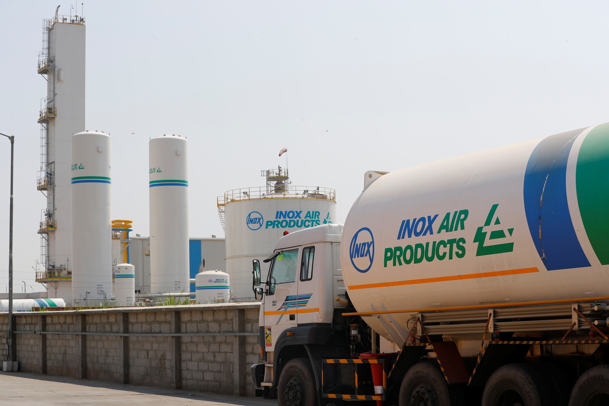 At an INOX gas plant in the state of Uttar Pradesh, around an hour's drive from Delhi, 12 trucks from cities across northern India were waiting to load oxygen on Thursday.
