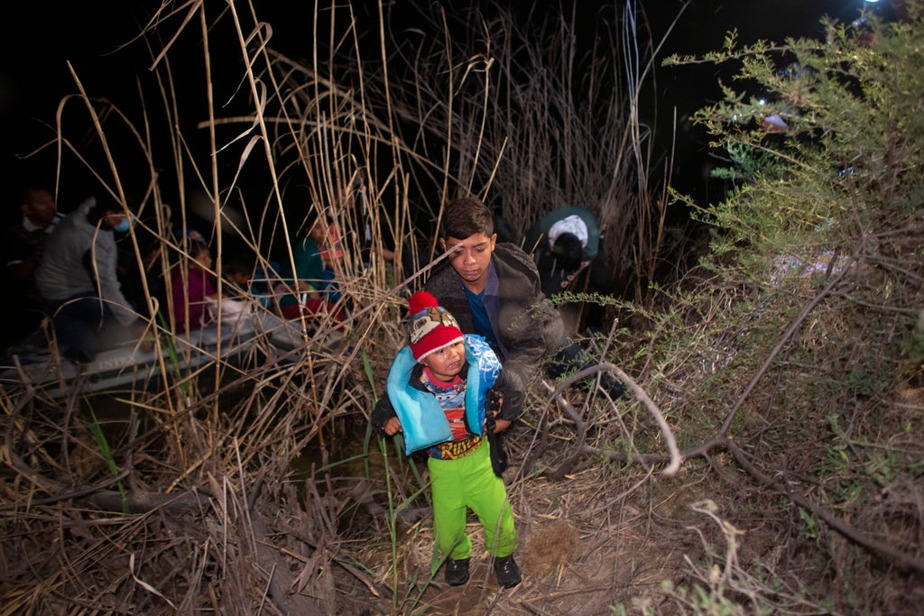 Or take a glimpse from above at the long dirt road along the Rio Grande in Mission, Texas where migrants walk after crossing the U.S.-Mexico border.
