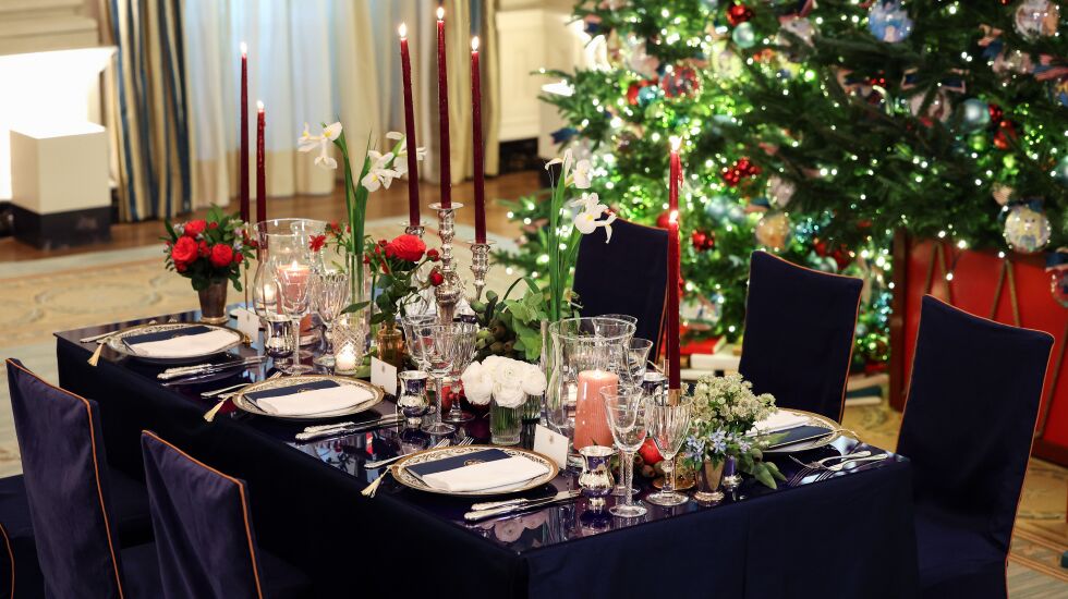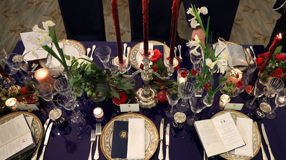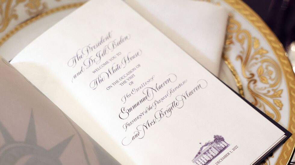 WASHINGTON — President Joe Biden and first lady Jill Biden host their first state dinner on Thursday, welcoming French President Emmanuel Macron and his wife, Brigitte, to the White House — more precisely, a candlelit pavilion on the South Lawn with entertainment by Jon Batiste and decorations highlighting the shared red, white and blue colors of our flags.