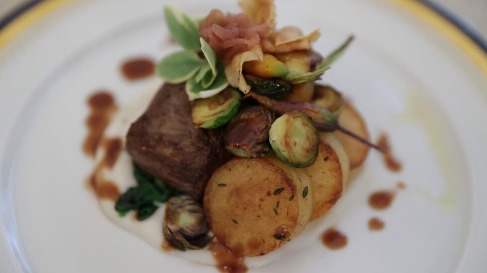 The dish will be served with with shallot marmalade, micro carrots and Brussels sprouts coming from “a hot house in Ohio; they specialize in wonderful vegetables that chefs would really love to use on their dishes.”
