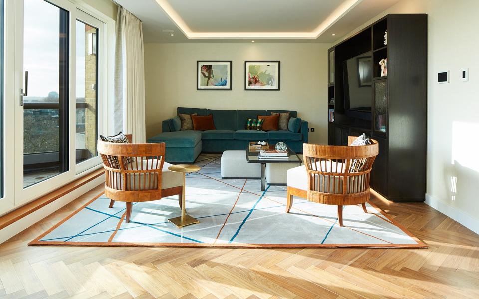 In this case, apartments are very top-end, slick and stylish. Attention to detail is second-to-none: marble bathrooms have underfloor heating, Hansgrohe showers and Bvulgari products. Bedrooms have velvet headboards, artisan ceramic lamps and luxe built-in wardrobes. Carpets are deep and sheets are high in thread-count and topped with Hermes throws. The living room is ‘magazine-ready’ with Lee Broom pendant lights, Porta Romana floor lamps and amber-velvet Gubbi Beetle chairs. Perfect for that Architectural Digest touch.