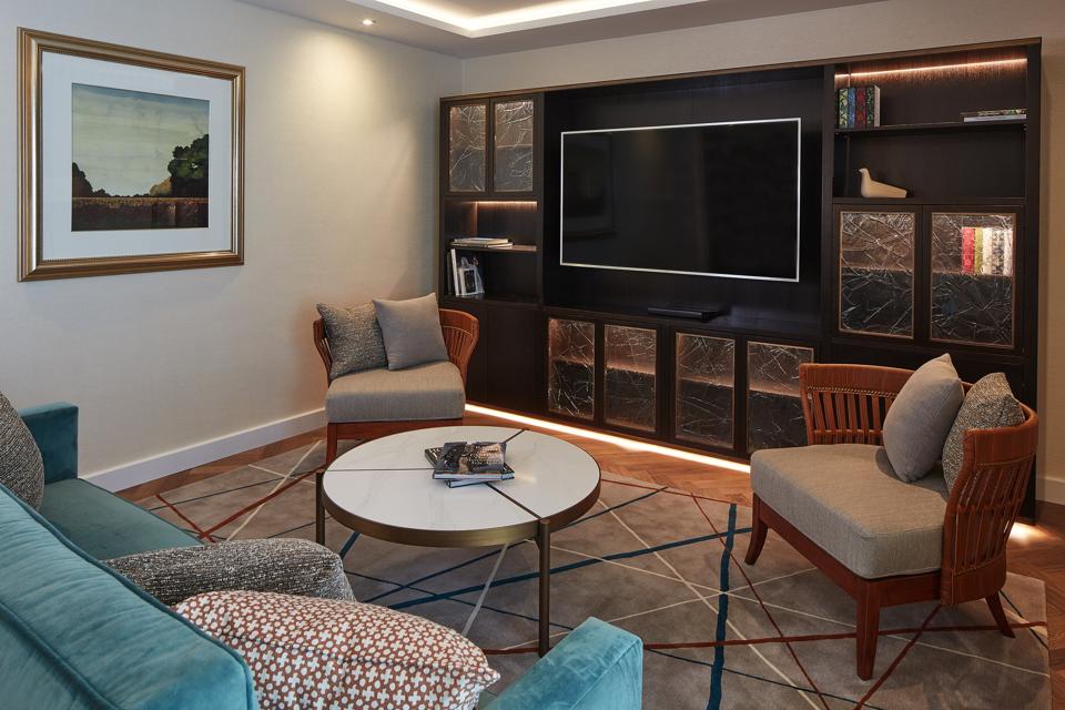 There are thoughtful touches throughout, such as the handy picnic hamper offering, which you can order, and which comes complete with a bottle of Champagne, picnic rug and mezze, ideal for al fresco lunches in one of the nearby Royal Parks. There’s a ground floor gym, with equipment from Precor, and a glamorous 12-seater cinema room, which can be booked for private screenings.