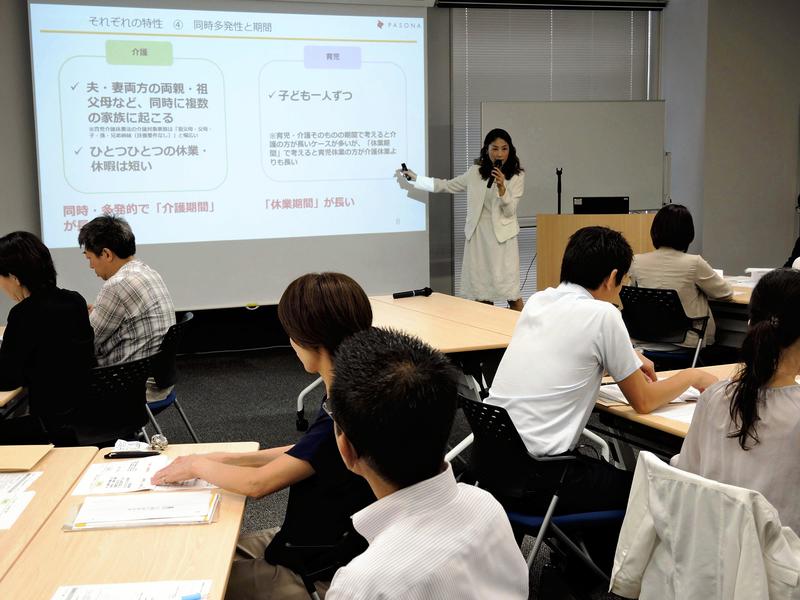 "It's necessary to reorder the working environment from a work style reform perspective, such as cutting back on long working hours and sharing duties among several employees," said Kanako Kikuchi, a licensed social insurance consultant knowledgeable about support measures for work-family care balance.