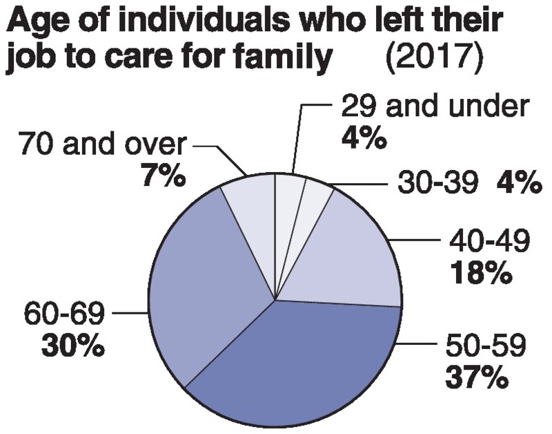 According to the Employment Status Survey, most people who left work to provide nursing care were in their most productive working years -- about 20 percent were in their 40s, and 40 percent were in their 50s.
