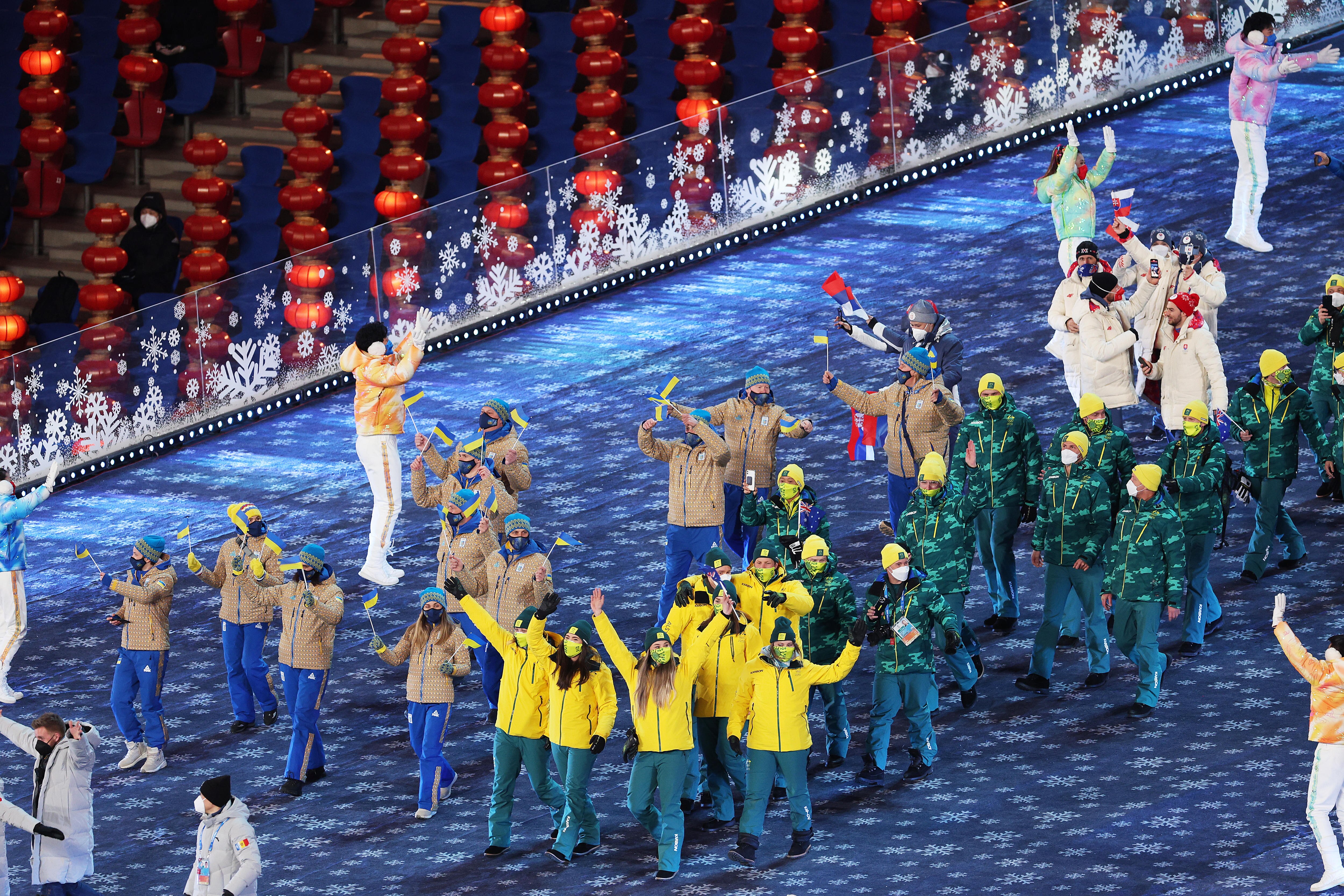 Australia's flag was carried by three-time Olympian, ski-cross competitor Sami Kennedy-Sim, and her teammates could be seen swaying and moving next to various countries as Beethoven's Ode to Joy played.