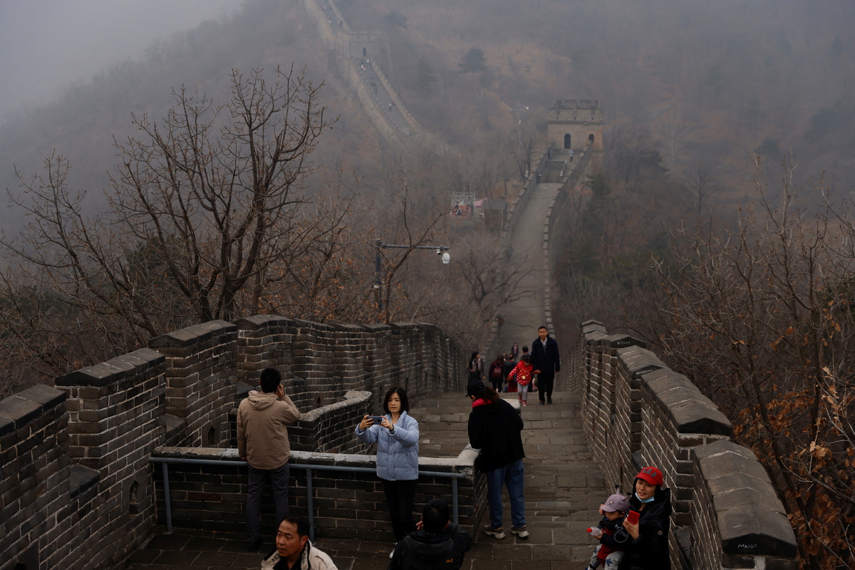 Staff at the Mutianyu section of the Great Wall of China in the north of Beijing said that they had received around 5,000 visitors on Saturday, a far cry from their usual daily capacity of 20,000 although they have capped numbers to around half of that due to COVID-19 restrictions.