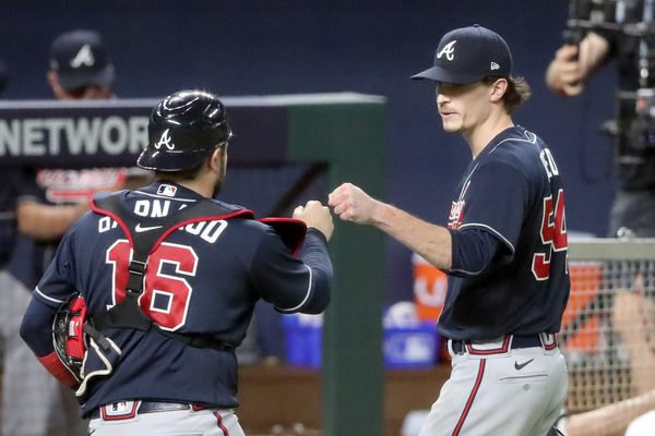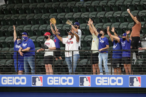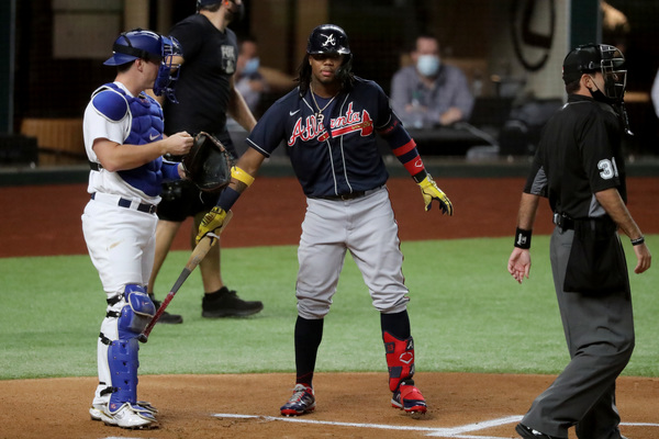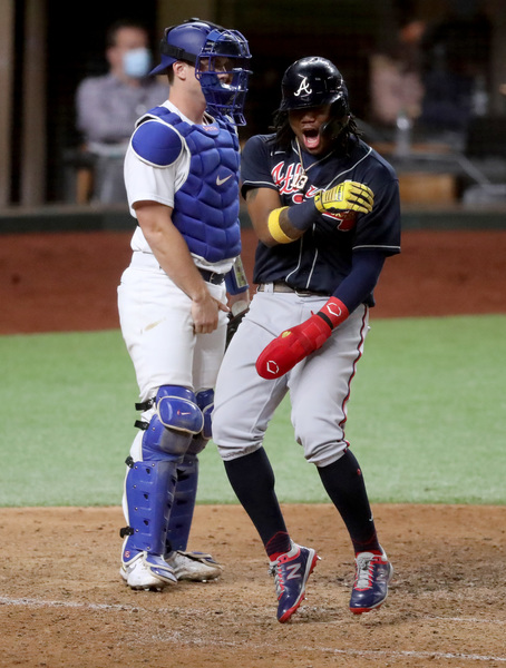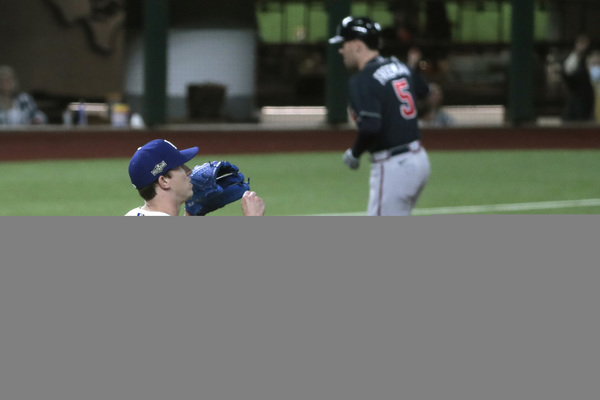 Dodger pitcher Walker Buehler is broadcast on a screen as a fan cleans off his windshield to see through the late afternoon glare during a drive-in viewing party on Monday, Oct. 12, 2020 in Los Angeles for the National League Championship Series against the Atlanta Braves in Arlington, Texas. (Myung J. Chung/Los Angeles Times/TNS) Atlanta Braves second baseman Ozzie Albies, center, celebrates his two-run home run with third base coach Ron Washington as the Braves bench including first baseman Freddie Freeman, top, react against the Los Angeles Dodgers during the ninth inning in Game 1 Monday, Oct. 12, 2020, for the best-of-seven National League Championship Series at Globe Life Field in Arlington, Texas. The Braves won 5-1. (Curtis Compton/Atlanta Journal-Constitution/TNS) Texas Rangers fans arrive to watch the Atlanta Braves play the Los Angeles Dodgers in Game 1 of the National League Championship Series at Globe Life Field on Monday, Oct. 12, 2020 in Arlington, Texas. (Curtis Compton/Atlanta Journal-Constitution/TNS)Atlanta Braves first baseman Freddie Freeman watches after he hit a solo home run during the first inning against the Los Angeles Dodgers in Game 1 Monday, Oct. 12, 2020, for the best-of-seven National League Championship Series at Globe Life Field in Arlington, Texas. (Curtis Compton/Atlanta Journal-Constitution/TNS)Los Angeles Dodgers first baseman Max Muncy can't get the foul ball by Atlanta Braves left fielder Adam Duvall (not pictured) during the second inning in Game 1 Monday, Oct. 12, 2020, for the best-of-seven National League Championship Series at Globe Life Field in Arlington, Texas. (Curtis Compton/Atlanta Journal-Constitution/TNS)Los Angeles Dodgers center fielder Cody Bellinger makes the catch for the out of Atlanta Braves third baseman Austin Riley (not pictured) to end the top of the fourth inning with runners in scoring position in Game 1 Monday, Oct. 12, 2020, for the best-of-seven National League Championship Series at Globe Life Field in Arlington, Texas. (Curtis Compton/Atlanta Journal-Constitution/TNS) Atlanta Braves first baseman Freddie Freeman, left, celebrates his solo home run with shortstop Dansby Swanson during the first inning against the Los Angeles Dodgers in Game 1 Monday, Oct. 12, 2020, for the best-of-seven National League Championship Series at Globe Life Field in Arlington, Texas. (Curtis Compton/Atlanta Journal-Constitution/TNS)A Dodgers fan socially distances while snapping a photo of a Braves fan as they arrive for Game 1 of the National League Championship Series at Globe Life Field on Monday, Oct. 12, 2020 in Arlington, Texas. (Curtis Compton/Atlanta Journal-Constitution/TNS)Atlanta Braves starting pitcher Max Fried, right, gets a fist bump from Atlanta Braves catcher Travis d'Arnaud to end the sixth inning against the Los Angeles Dodger in Game 1 Monday, Oct. 12, 2020, for the best-of-seven National League Championship Series at Globe Life Field in Arlington, Texas. (Curtis Compton/Atlanta Journal-Constitution/TNS) Fans watch the Dodgers play in the National League Championship Series against the Atlanta Braves in Arlington, Texas during a drive-in viewing party at Dodger Stadium on Monday, Oct. 12, 2020 in Los Angeles. (Myung J. Chun/Los Angeles Times/TNS) Atlanta Braves center fielder Cristian Pache catches a fly ball to out Los Angeles Dodgers left fielder A.J. Pollock (not pictured) to end the fourth inning in Game 1 Monday, Oct. 12, 2020, for the best-of-seven National League Championship Series at Globe Life Field in Arlington, Texas. (Curtis Compton/Atlanta Journal-Constitution/TNS) Los Angeles Dodgers shortstop Corey Seager (5) strikes out in the first inning in game one of the NLCS at Globe Life Field Monday, Oct. 12, 2020 in Arlington, Texas. (Robert Gauthier/Los Angeles Times/TNS) Los Angeles Dodgers second baseman Enrique Hernandez, center, celebrates his solo home run with right fielder Mookie Betts (50) during the fifth inning against the Atlanta Braves in Game 1 Monday, Oct. 12, 2020, for the best-of-seven National League Championship Series at Globe Life Field in Arlington, Texas. (Curtis Compton/Atlanta Journal-Constitution/TNS) Atlanta Braves catcher Travis d'Arnaud hits a leadoff single during the sixth inning against the Los Angeles Dodgers in Game 1 Monday, Oct. 12, 2020, for the best-of-seven National League Championship Series at Globe Life Field in Arlington, Texas. (Curtis Compton/Atlanta Journal-Constitution/TNS) Atlanta Braves shortstop Dansby Swanson steals second base ahead of the tag by Los Angeles Dodgers second baseman Enrique Hernandez in the fourth inning in Game 1 Monday, Oct. 12, 2020, for the best-of-seven National League Championship Series at Globe Life Field in Arlington, Texas. (Curtis Compton/Atlanta Journal-Constitution/TNS) Atlanta Braves shortstop Dansby Swanson steals second base ahead of the tag by Los Angeles Dodgers second baseman Enrique Hernandez in the fourth inning in Game 1 Monday, Oct. 12, 2020, for the best-of-seven National League Championship Series at Globe Life Field in Arlington, Texas. (Curtis Compton/Atlanta Journal-Constitution/TNS) Atlanta Braves center fielder Ronald Acuna greets Los Angeles Dodgers catcher Will Smith with the tap of his bat before Game 1 Monday, Oct. 12, 2020, for the best-of-seven National League Championship Series at Globe Life Field in Arlington, Texas. (Curtis Compton/Atlanta Journal-Constitution/TNS)Los Angeles Dodgers starting pitcher Walker Buehler walks to the dugout ready to pitch wearing a bandage on his finger before Game 1 against the Atlanta Braves, Monday, Oct. 12, 2020, for the best-of-seven National League Championship Series at Globe Life Field in Arlington, Texas. (Curtis Compton/Atlanta Journal-Constitution/TNS)Los Angeles Dodgers starting pitcher Walker Buehler delivers against the Atlanta Braves during the fourth inning in Game 1, Monday, Oct. 12, 2020, for the best-of-seven National League Championship Series at Globe Life Fi