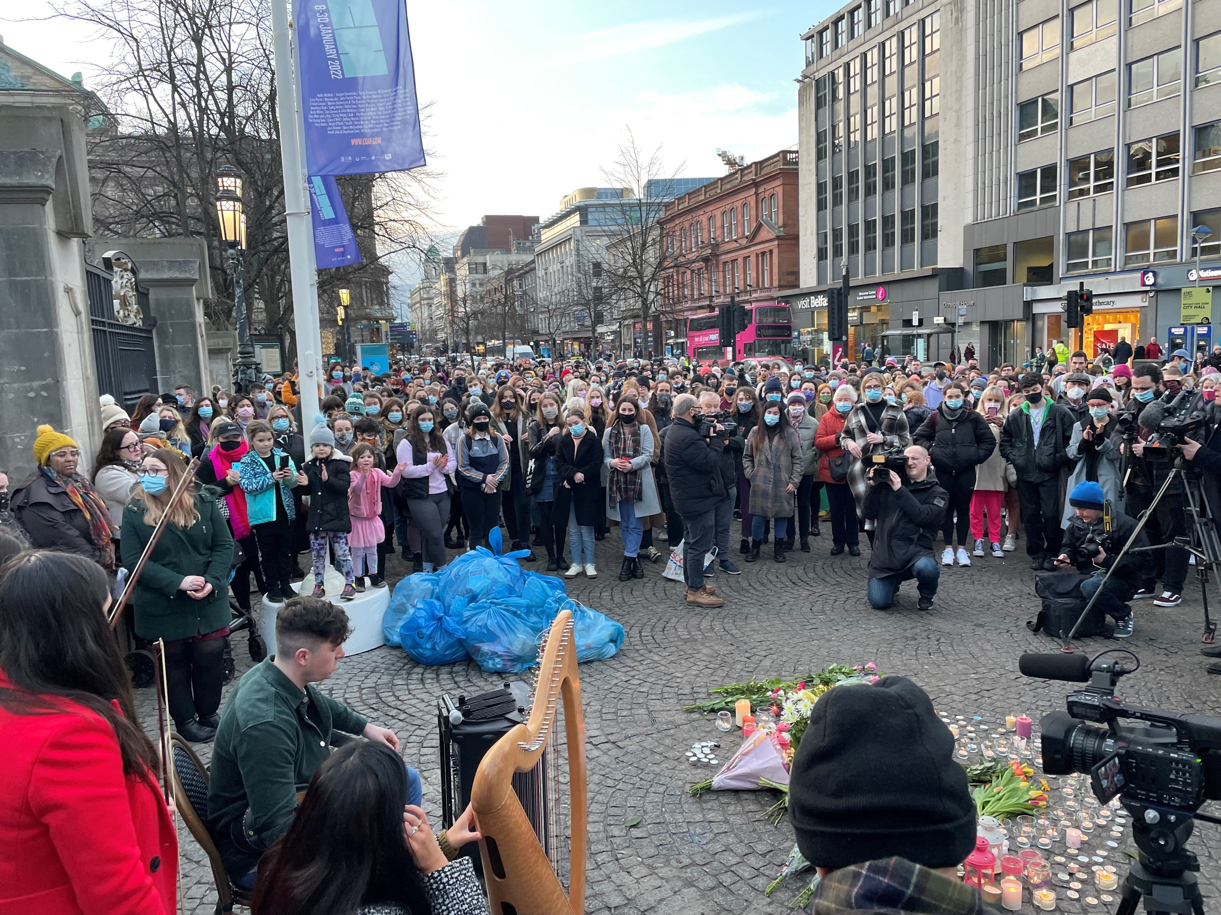“Little did I know on Monday that I’d be standing here only a short number of days later, joining with other women who have gathered here outside Belfast City Hall to show solidarity to the family and all that loved Ashling Murphy.
