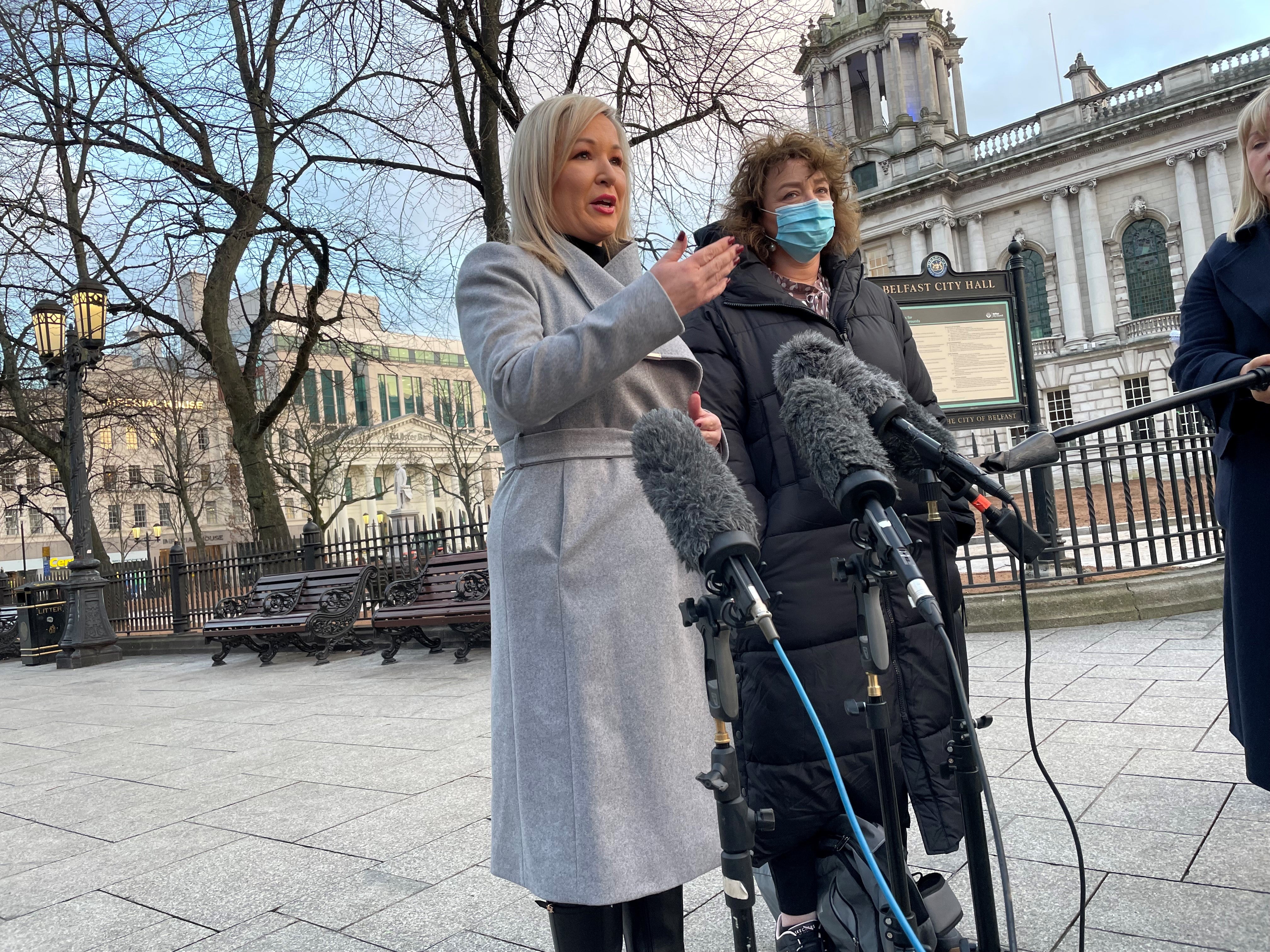 Stormont deputy First Minister Michelle O’Neill made the remarks as she joined a crowd of several hundred which gathered in front of Belfast City Hall