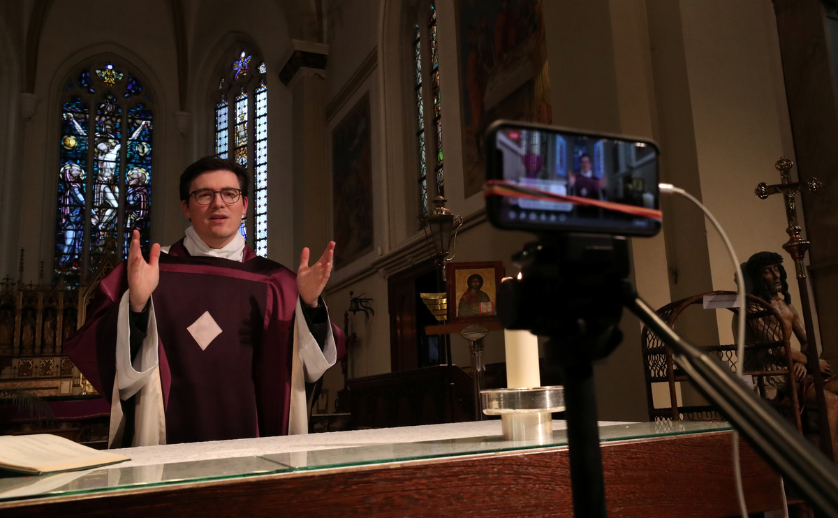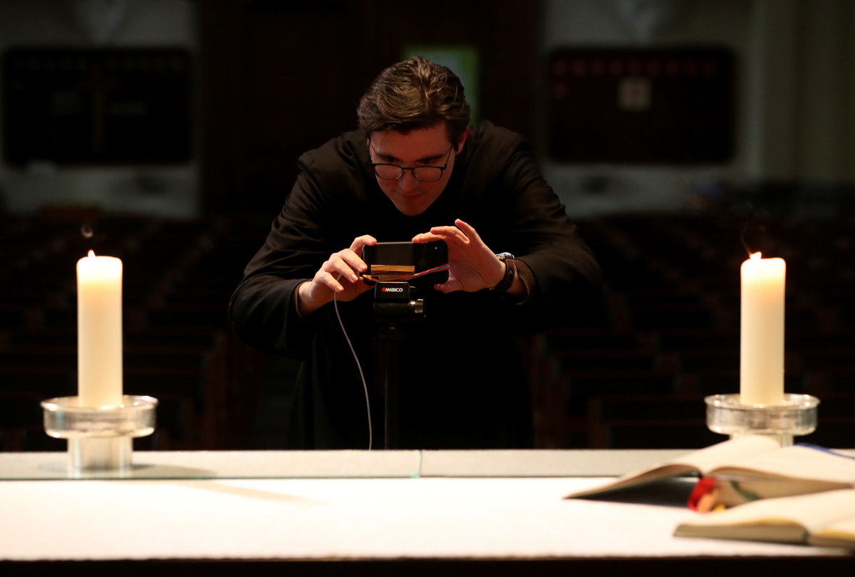 The 38-year-old priest now holds an hour-long service from his empty church at 6 p.m. on Mondays to Fridays and a half-hour prayer slot at 9 p.m.. There is an earlier service on Saturday and a mass on Sunday morning.