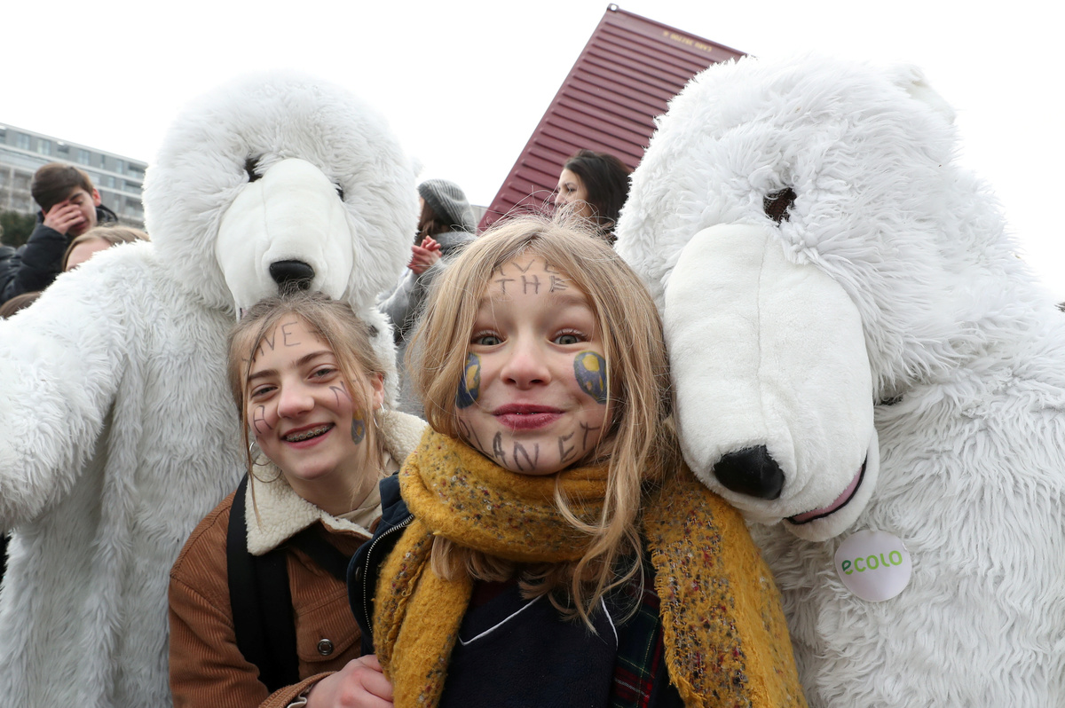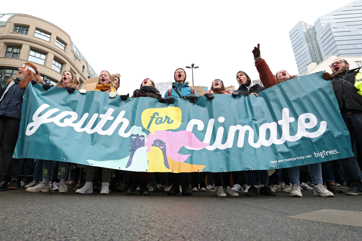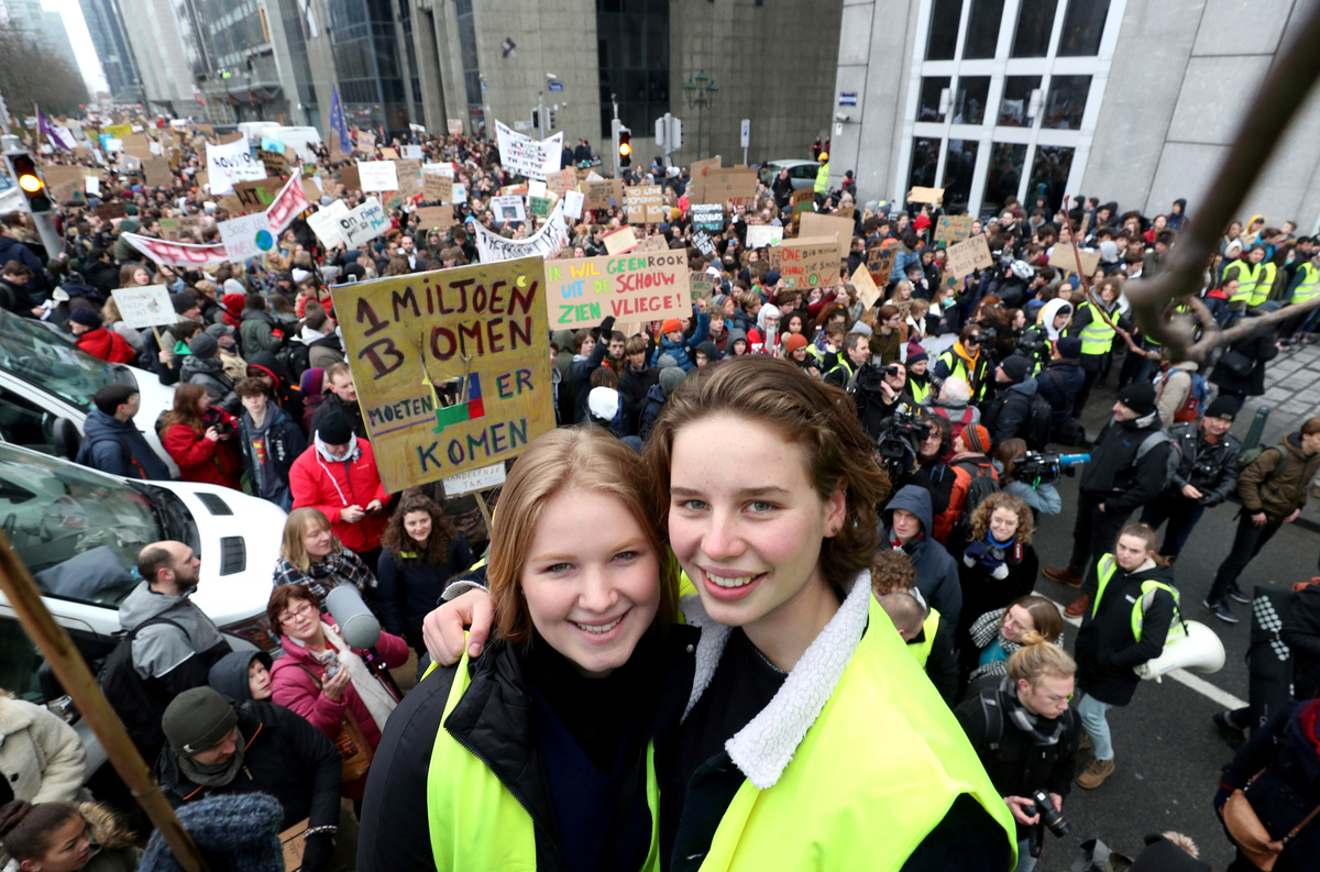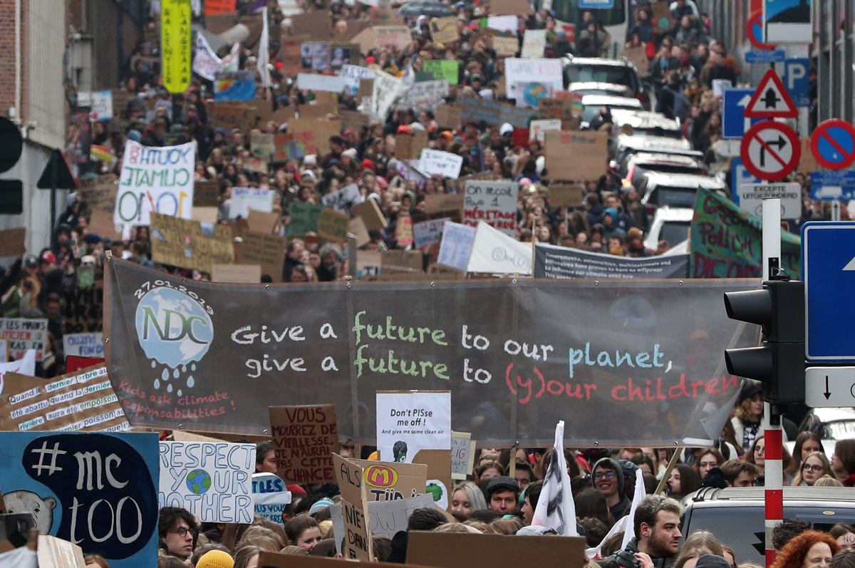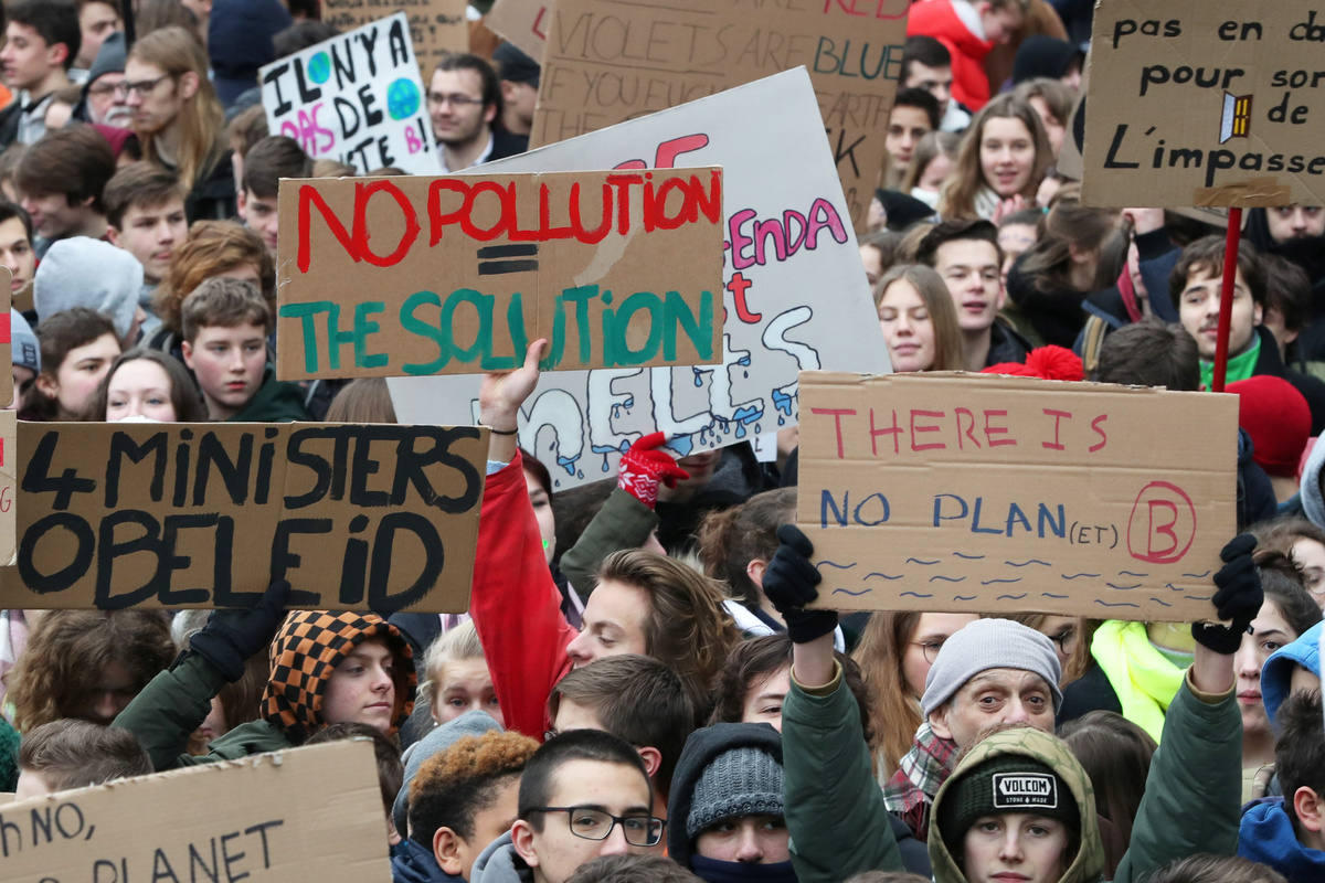 Beating drums, chanting and carrying signs, some 30,000 teenagers braved the cold in Brussels and other cities to call on local politicians for stronger action to prevent climate change.