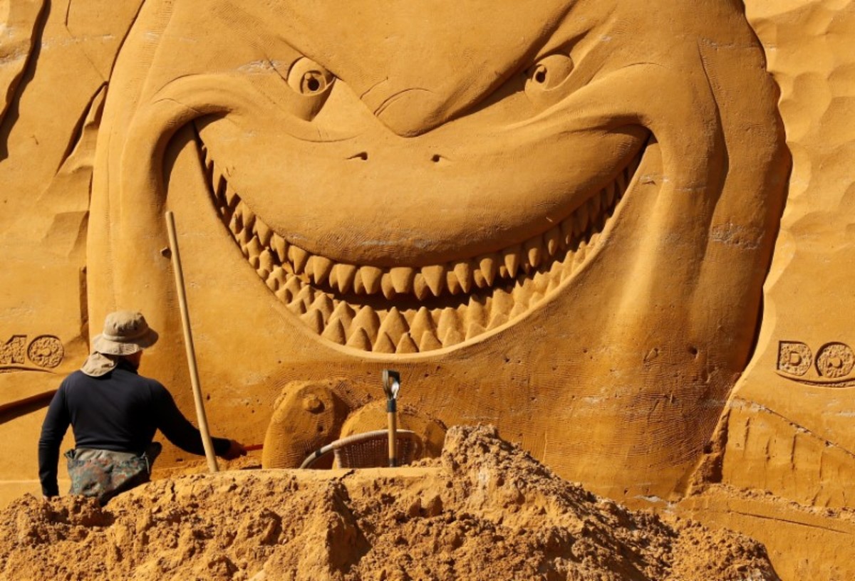 Some of the sculptures are several meters high. Among the depictions are works featuring Daffy Duck, Yoda and Bruce, the grinning great white shark from "Finding Nemo".