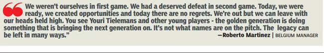 With three minutes to go, Martinez would call for Hazard. A last throw of the dice? Perhaps not. It would be out of respect for their long-serving captain, to give him a farewell than affect any dramatic change in the narrative. In the end, Croatia would go through, Belgium would go home, Lukaku would destroy a plastic glass board on his team bench and De Bruyne would be told to stop running. He would reluctantly do so.