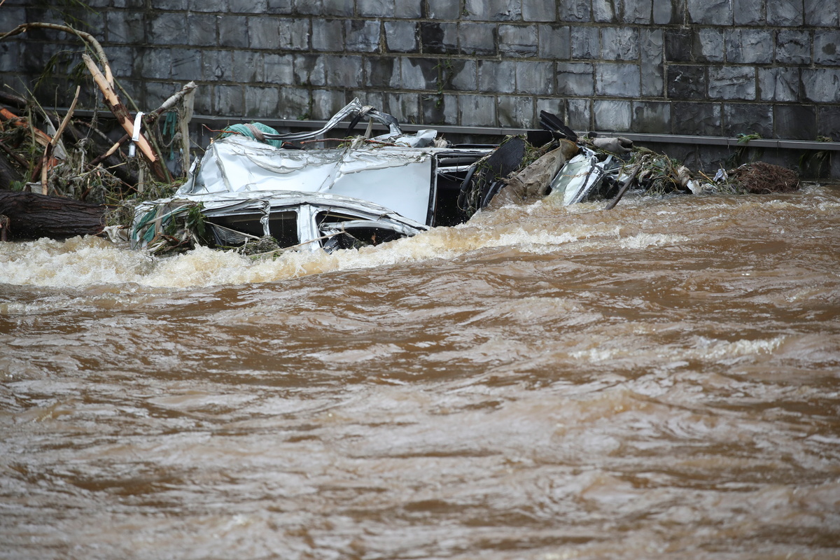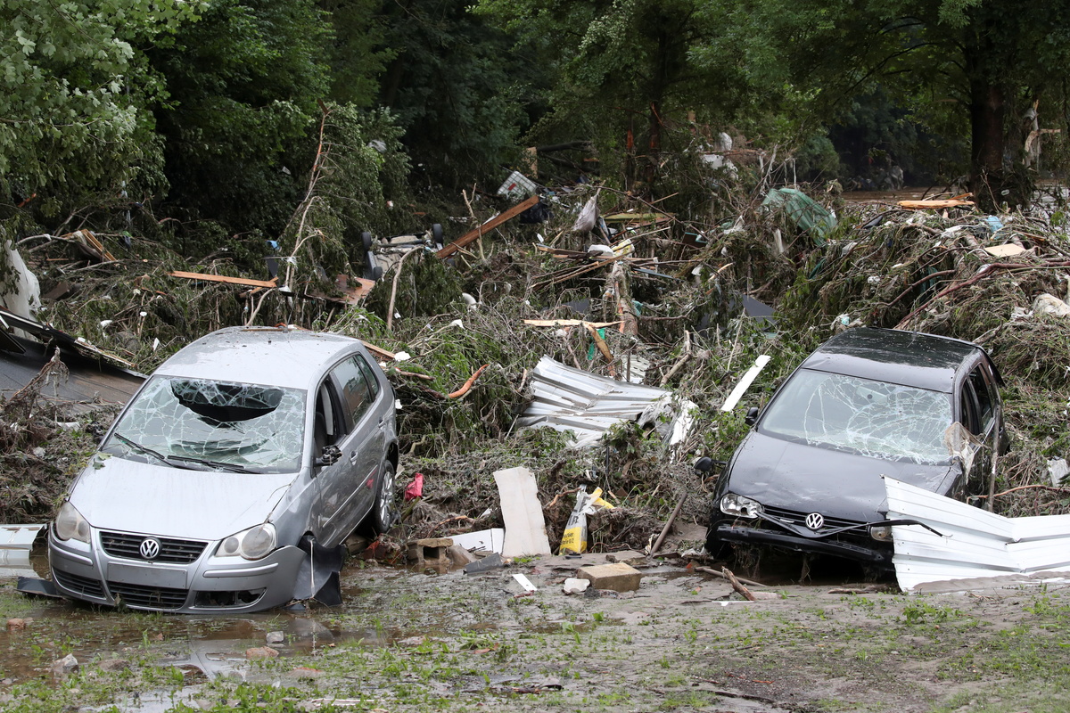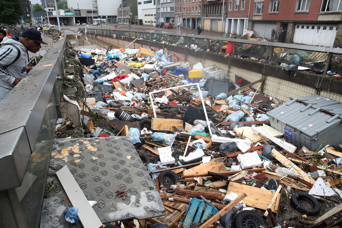 In the eastern town of Verviers, the swollen river was still rushing through neighbouring streets, where people gingerly tried to salvage ruined shops, homes and cars.
