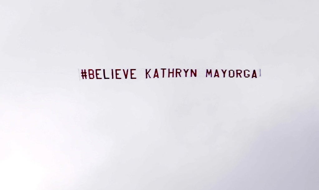 The banner, which stated: “Believe Kathryn Mayorga” and was organised by feminist campaign group Level Up, was in reference to the woman who accused Ronaldo of rape in 2009.