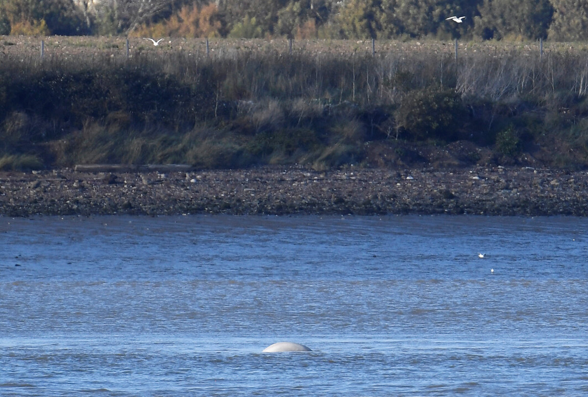 LONDON (Reuters) - A beluga whale was spotted on Tuesday near barges in the River Thames near London, hundreds of miles from its normal Arctic habitat, naturalists said.