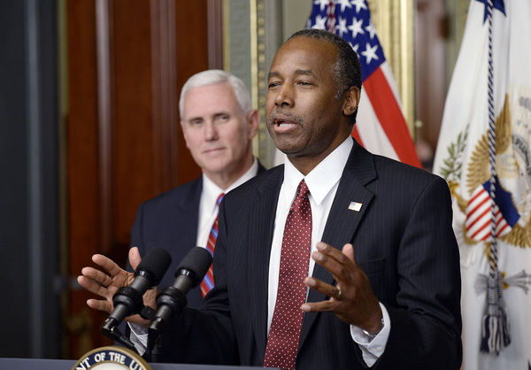 Carson will also confront a national shortage in low-income housing. A report Thursday from the National Low Income Housing Coalition found a shortage of 7.4 million affordable housing units for extremely low income households. The study said there are just 35 available units for every 100 very low income families nationwide.