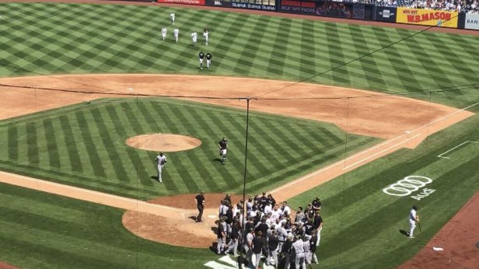 Benches and bullpens emptied. Anderson made a beeline for the scrum, but no punches were thrown. Anderson had to be restrained by Jose Abreu, even after they returned to the dugout.