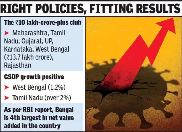 KOLKATA: West Bengal has become one of only two states in the over-Rs 10 lakh crore club to witness a positive GDP growth in the pandemic-hit year, the other being Tamil Nadu.