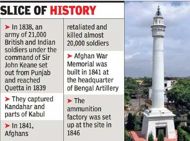 KOLKATA: Long before Rabindranath Tagore’s ‘Kabuliwala’ found a place in the Bengali mindscape, Afghanistan had a physical presence in the city in the form a war memorial, commemorating the death of 20,000 soldiers in the First Anglo-Afghan War. The ammunition factory that later came up here also had a role to play in sparking off the Sepoy Mutiny in 1857.