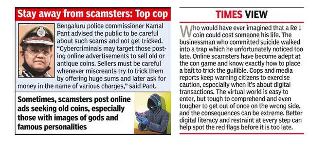 BENGALURU: The Chikkaballapur incident in which the owner of a Re 1 coin was cheated of Rs 26 lakh by online fraudsters is not an isolated case. Bengaluru city police have registered at least three such cases in the last four months and the accused remain untraced.