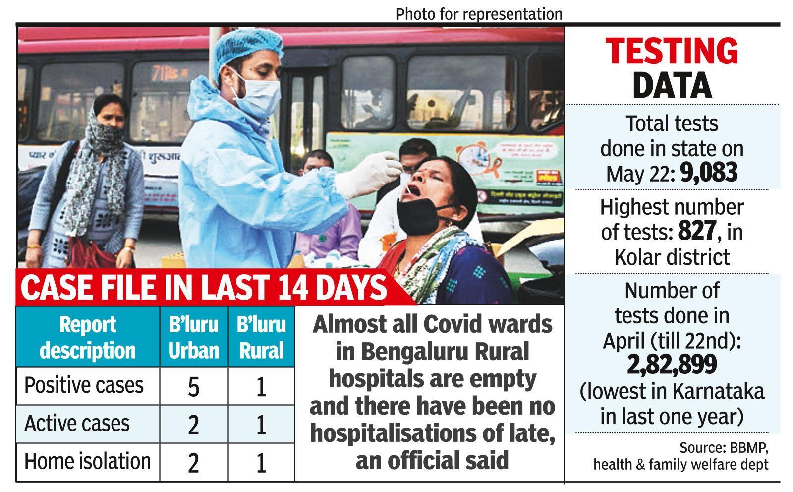 BENGALURU: At a time when Covid-19 is seen as being on its way out, the sudden rise in positivity rate in Bengaluru Rural has left many confused. With just nine positive cases this month, the district reported an incongruous positivity rate of 3.3% — the highest in Karnataka as on May 25.