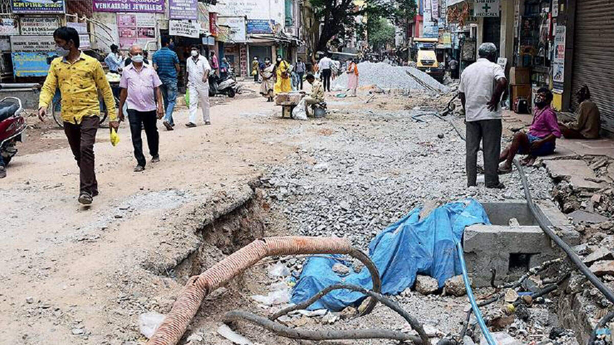 BENGALURU: There appears to be no relief in sight for traders on Avenue Road, a popular shopping hub in the heart of Bengaluru. After suffering massive losses from the two pandemic-induced lockdowns, their businesses are stagnating due to the snail’s pace of redevelopment work.