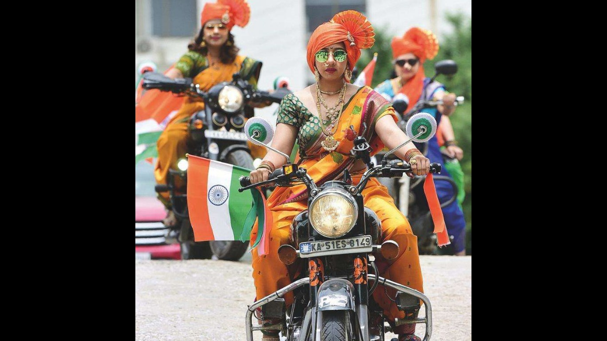 Biker and society founder Harshini Venkatesh said, “Considering it’s the platinum jubilee of our Independence Day, we had to do something different. We thought of a bike fashion show which is quite unique. We wore attires from different states like Maharashtra, Karnataka, Andhra Pradesh, Odisha and Tamil Nadu, and jewellery to go with them.” The bikers are between 25 and 45 years.