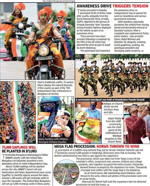 BENGALURU: The first Bikers Fashion Show was indicative of the 75th Independence Day mood on Sunday across the city — 75 women from veterans’ families sashayed holding a 80-foot-long tricolour with 75 women bikers on rumbling bikes accompanying them.