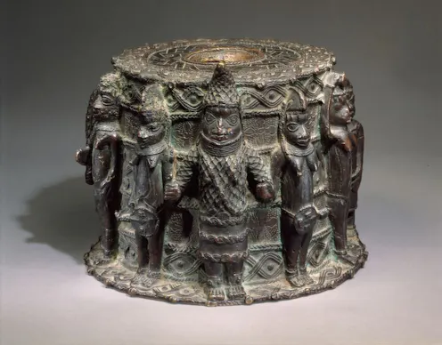 Altar to the Hand (Ikegobo), late 18th century, Nigeria, Court of Benin, Edo peoples, Bronze. In the royal kingdom of Benin, cylindrical ‘altars to the hand,’ or ikegobo, are created to celebrate a person’s accomplishments and successes. Photo by: Sepia Times/Universal Images Group via Getty Images, Rights-managed