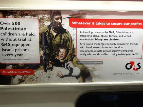 “We put up around 150 posters on the tube to shine a spotlight on the support Israel gets from the UK: the government, arms industry, and companies like G4S.
