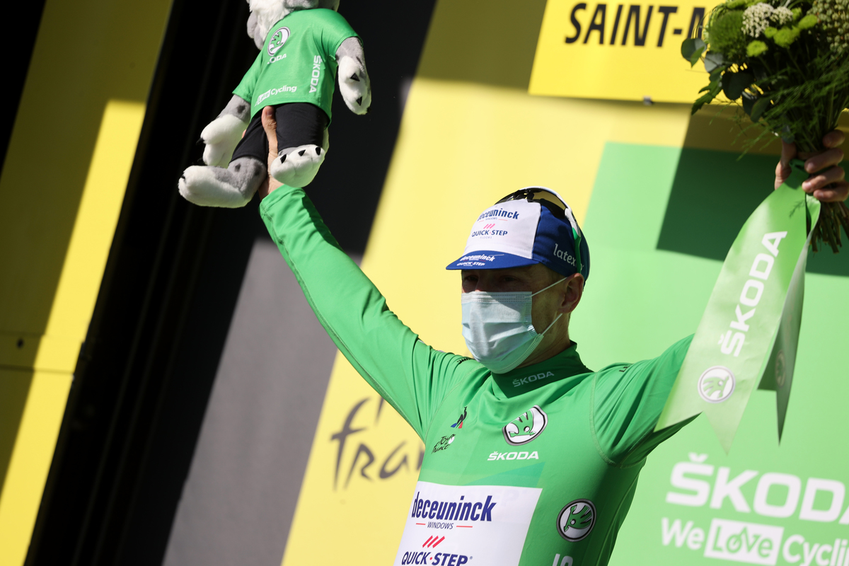 The green jersey crowns the rider who wins the most points, available at the finish and on intermediate sprints.