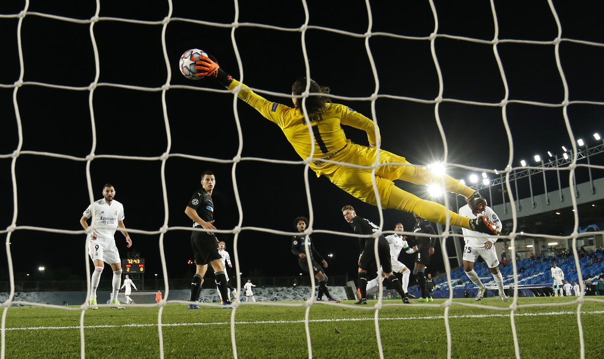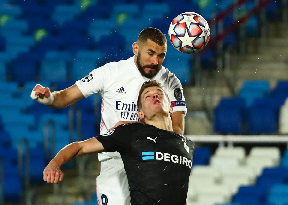 Benzema ghosted into the area unmarked to head home a floated cross from Lucas Vazquez in the ninth minute and rose again to score in the 32nd, this time powering a cross from Rodrygo through the hands of Swiss keeper Yann Sommer.