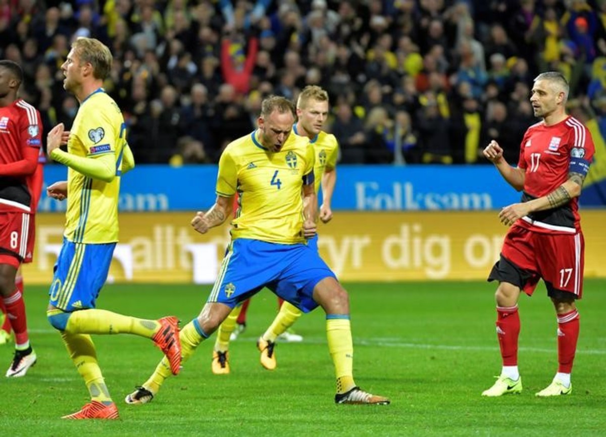 STOCKHOLM (Reuters) - Striker Marcus Berg scored four goals and Andreas Granqvist netted two penalties as Sweden ran riot in front of a record crowd of 50,022 at the Friends Arena, hammering Luxembourg 8-0 to replace France as leaders of World Cup qualifying Group A.