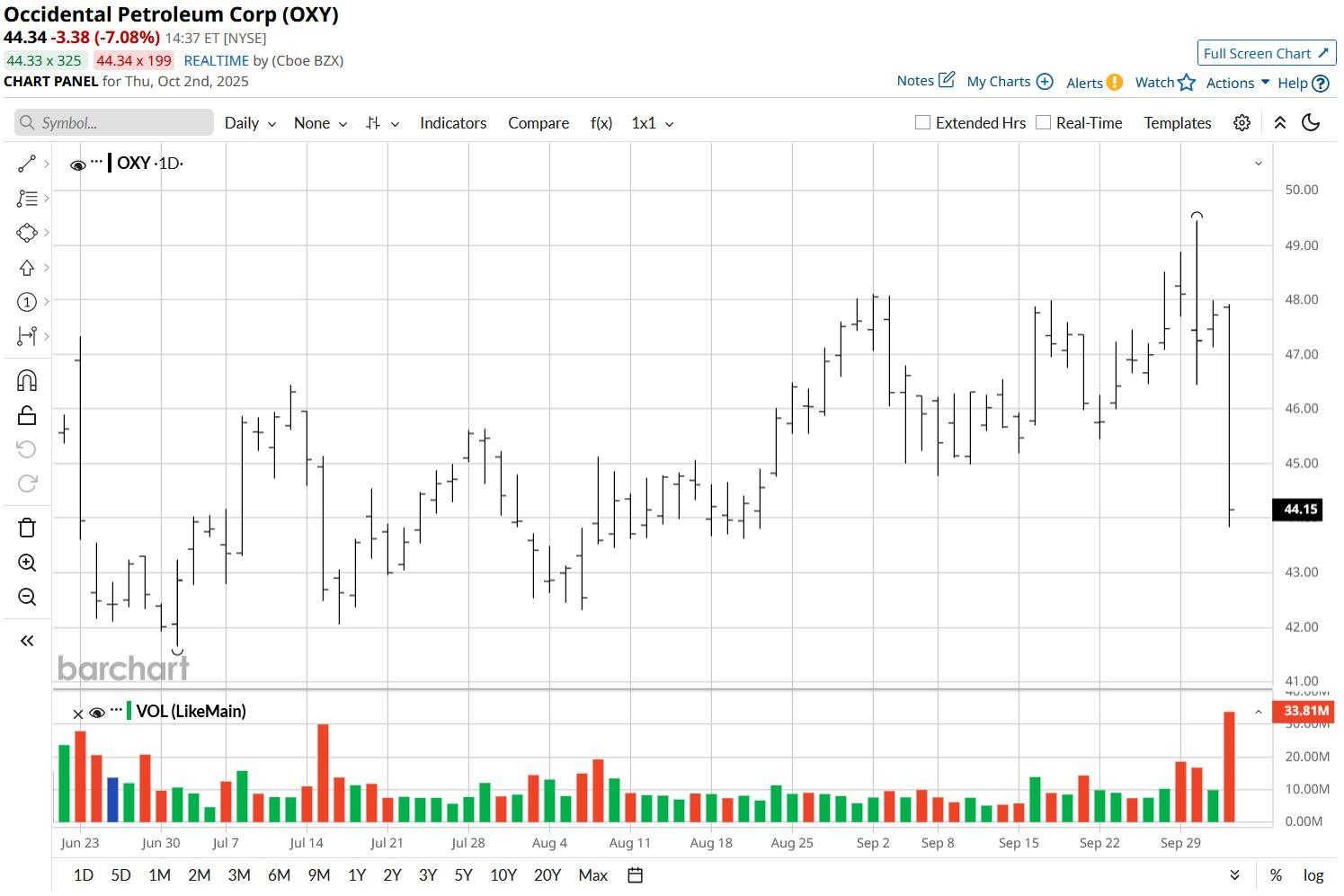 Despite today’s decline, Occidental Petroleum stock remains up some 25% versus its year-to-date low.
