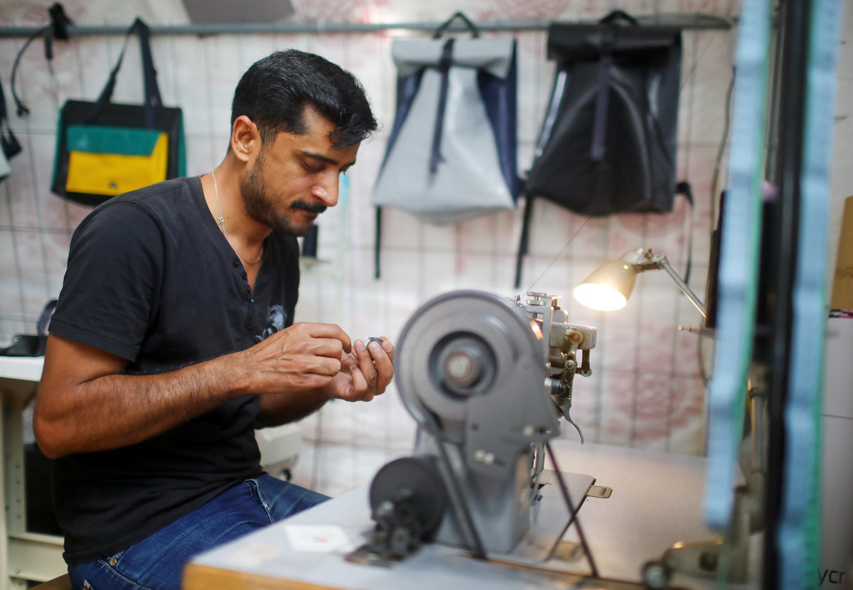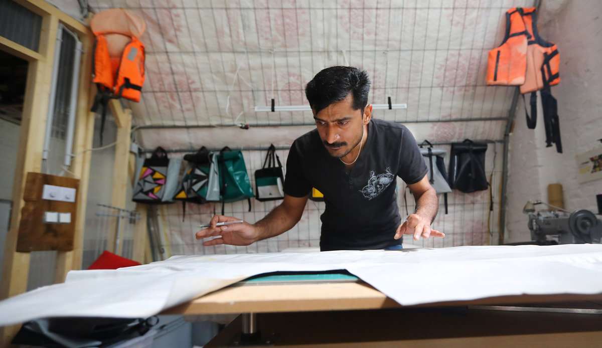 BERLIN (Reuters) - When Abid Ali risked his life in a rubber dinghy in 2015 as he fled Pakistan for Europe, he didn't think that three years later he would be making bags, backpacks and sneakers out of similar boats in a small workshop in Berlin.