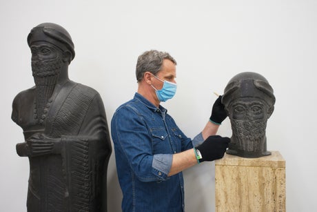 In addition to the Pergamon and its Museum of the Ancient Near East where Geismeier cleaned the head of Puzur-Ishtar, the ruler of the city of Mari, on Monday, other facilities reopening in Berlin include the Alte Nationalgalerie, the James Simon Gallery, and the Neues Museum.