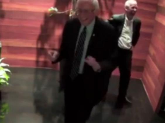 With well-known song ‘Disco Inferno’ playing in the background, the 74-year-old Democratic presidential candidate was filmed clapping and bopping backstage while waiting for his interview, set to air on Thursday night.