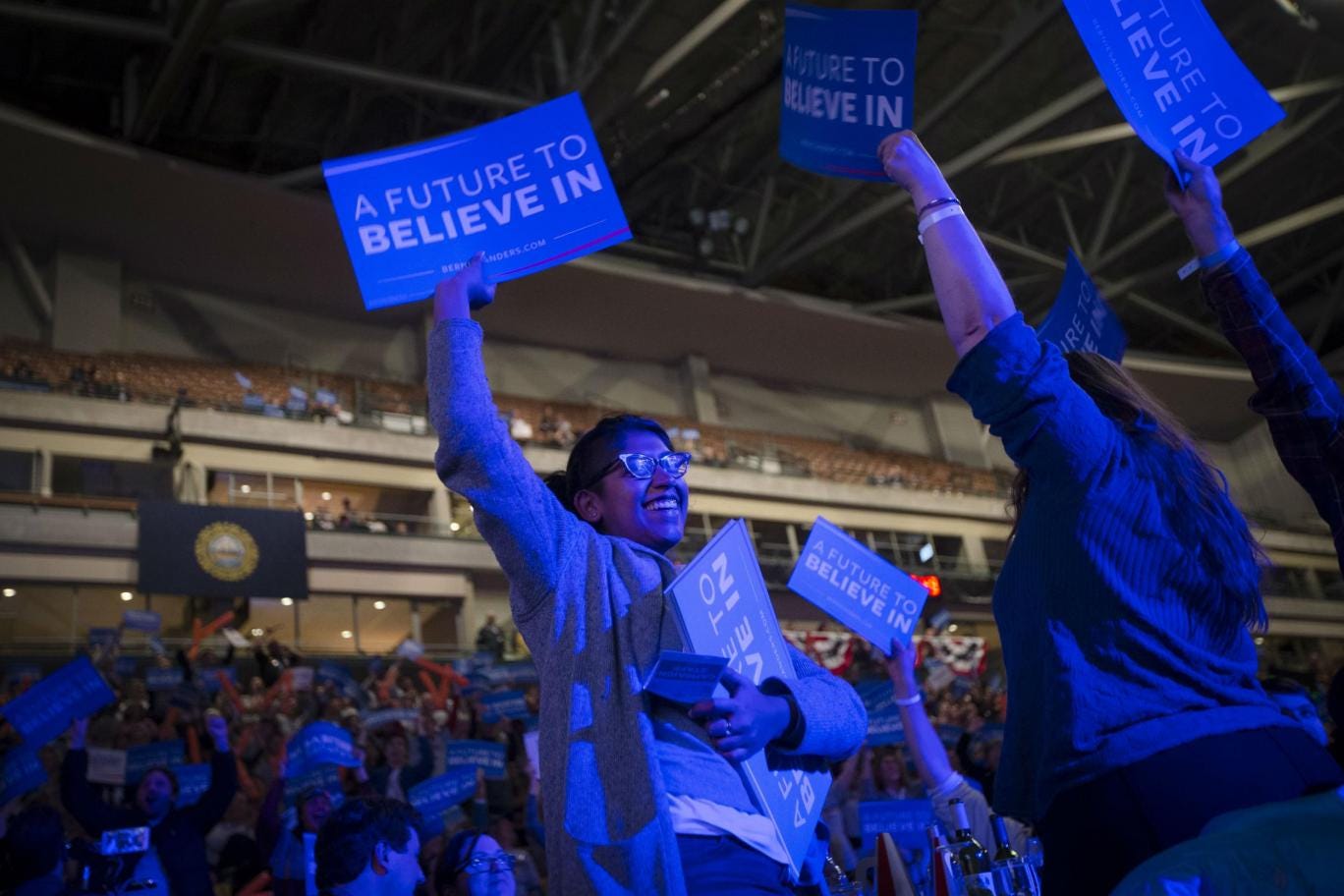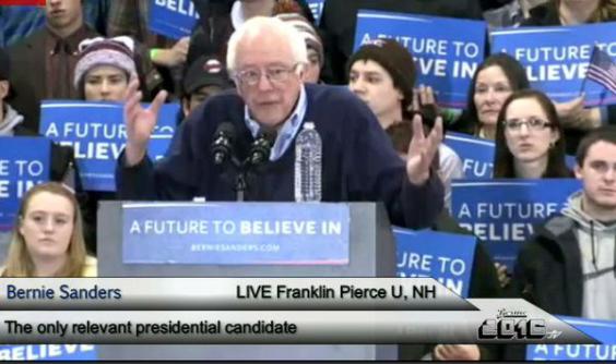 When he took to the stage in the gymnasium at Franklin Pierce University in Rindge, an hour north of Manchester, New Hampshire, where the sound system had blasting David Bowie’s Young Americans, Mr Sanders received huge, roaring cheers. At one point during his 45 minute address, he became so energised that he was obliged to take off his jacket.