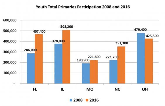 On Tuesday, young voters exceeded their 2008 turnout in 4 of the 5 states — in three of those states by large margins.