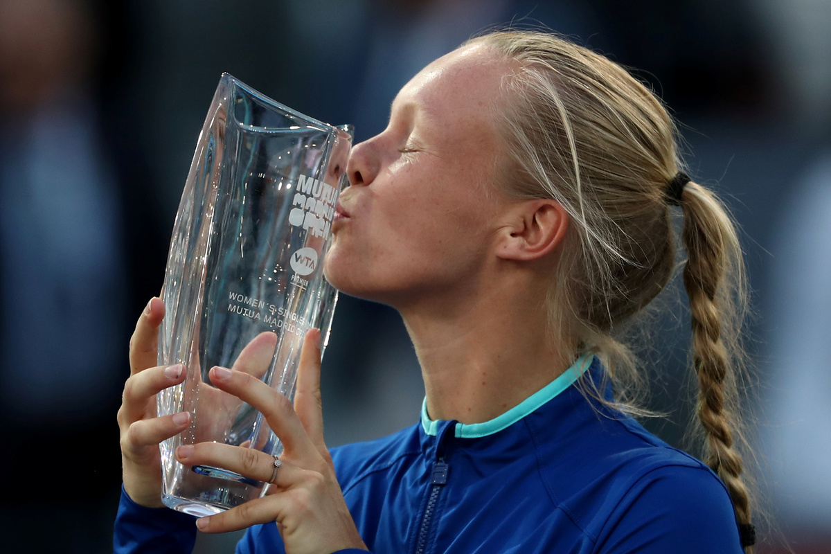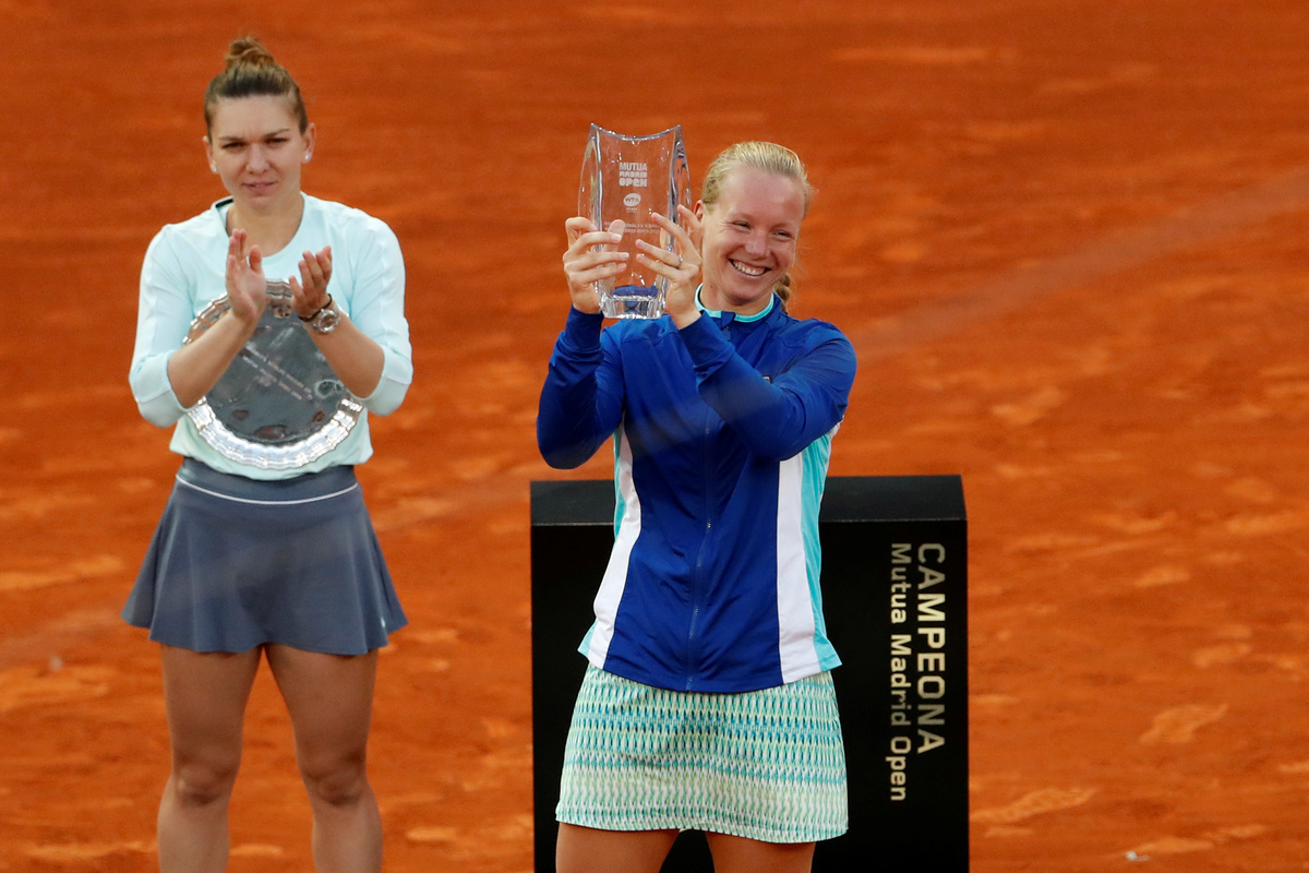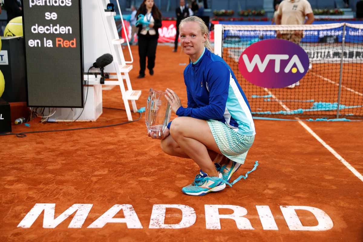 MADRID (Reuters) - Kiki Bertens won the biggest title of her career on Saturday, beating Simona Halep 6-4 6-4 in the Madrid Open final while also becoming the first woman ever to win the championship without dropping a set.