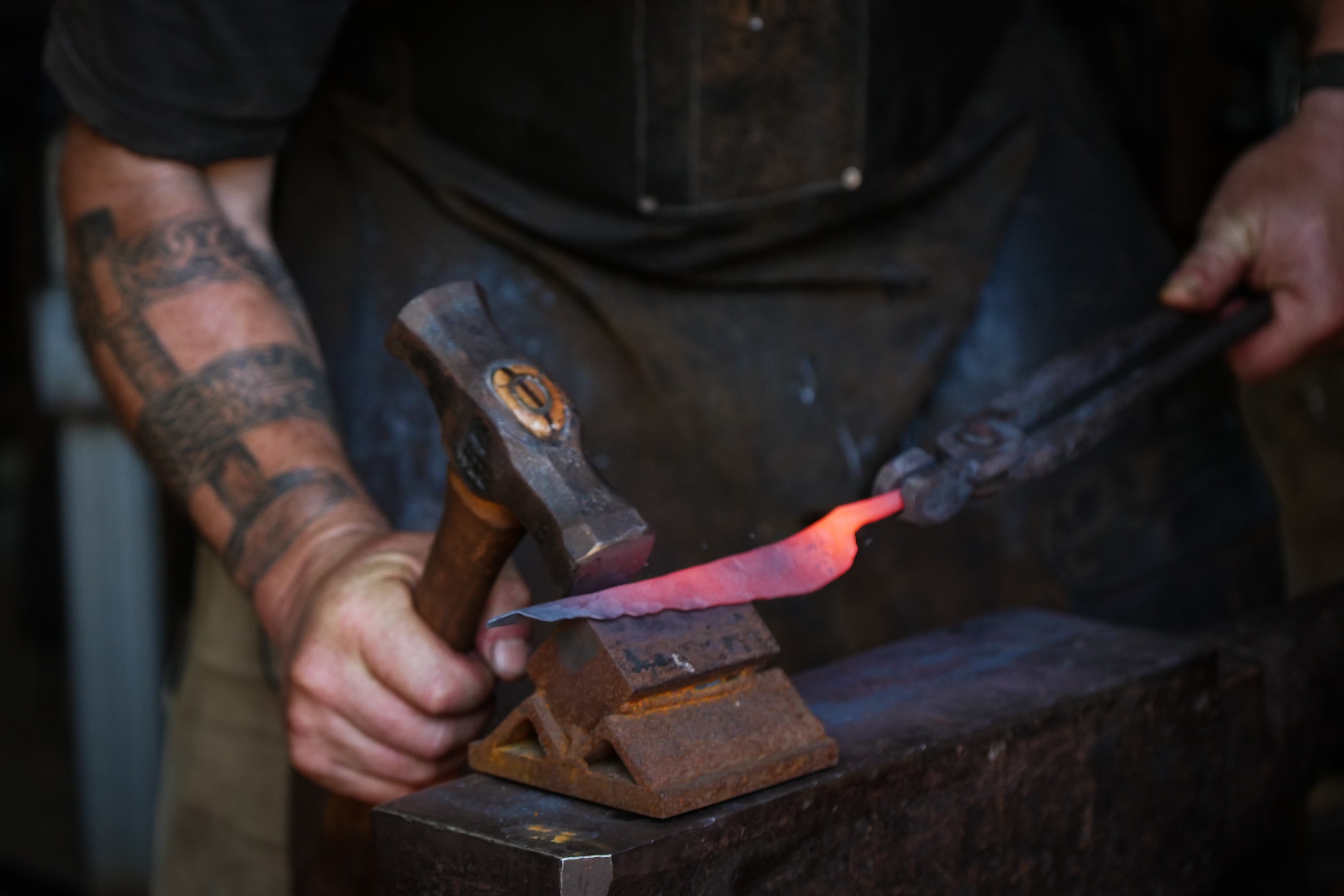 With origins dating back as far as 1,500BC, blacksmithing involves the heating of metal rods before pounding and shaping them into objects such as tools, furniture, gates and even weapons.