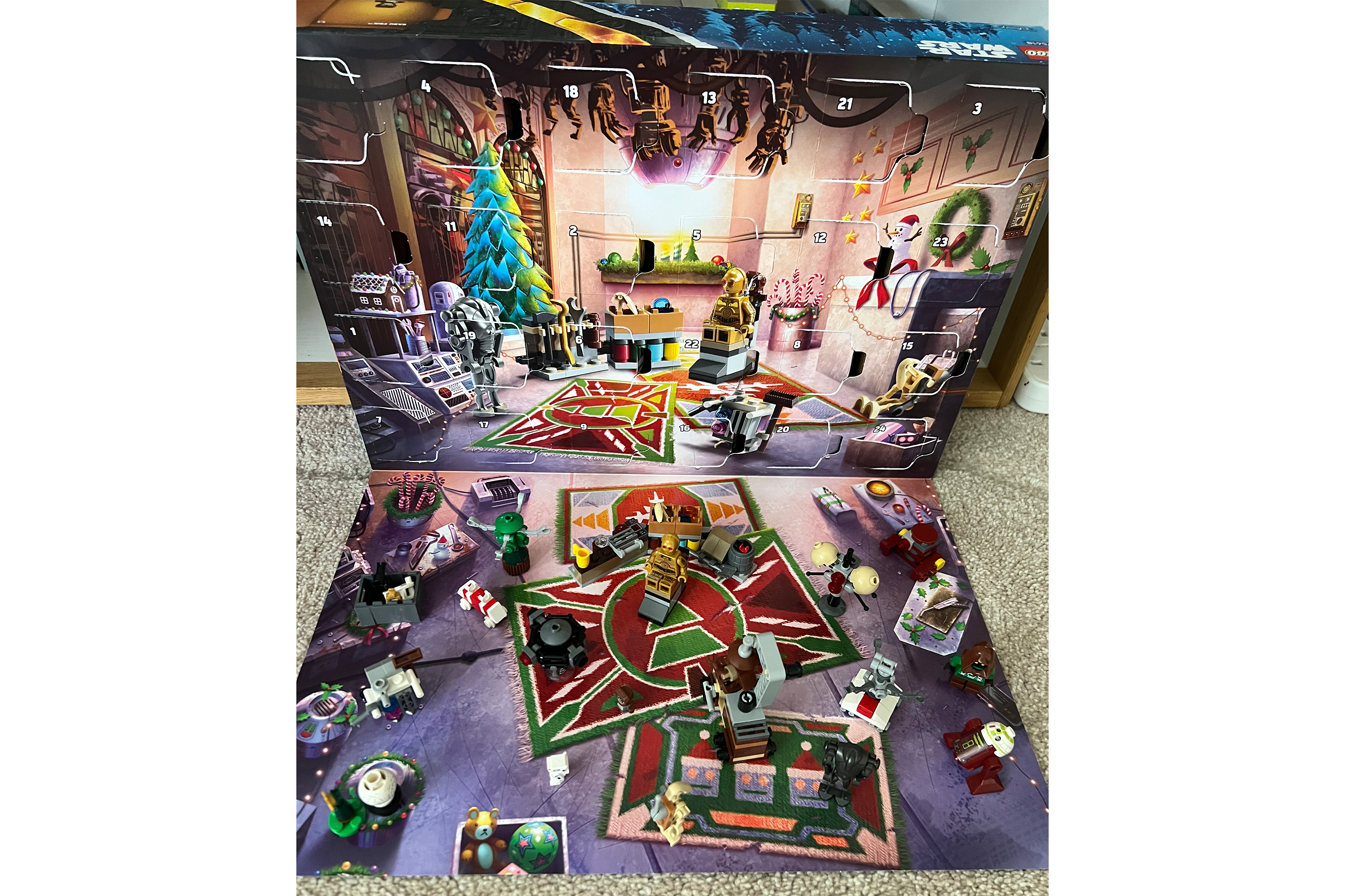 The box also opens out into a festive Star Wars scene, creating a fun backdrop for displaying the contents, as well as for imaginative play.