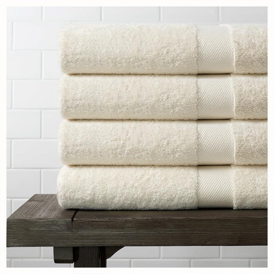 These Boll & Branch Plush Bath Towels are thick and luxurious—the perfect combo for a spa-like vibe at home. They’re crafted from 100% fair trade-certified organic cotton that’s also Standard 100 by Oeko-Tex certified, which means it’s free of potentially harmful chemicals. The towels are a bit oversized at 30 x 58 inches, and they’re extremely absorbent and soft.