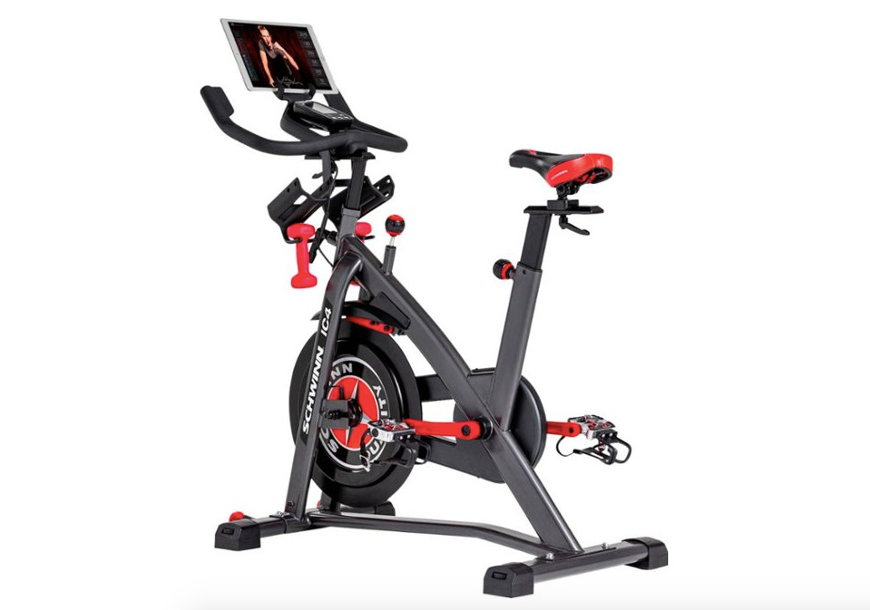 This IC4 by Schwinn is a worthy competitor in the market for such a machine, with its 40 pound flywheel with an intuitive resistance knob, 100 levels of magnetic resistance, backlit LCD display, and small dumbells within easy reach so you can ramp up your workout without pause.